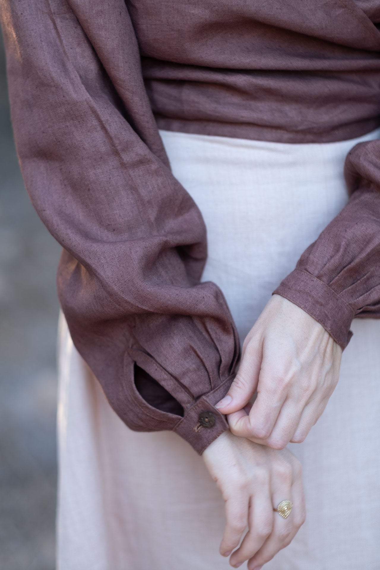 שרוולים ארוכים תפוחים עם כפתורי קוקוס, סגירת עטיפת קשירה.