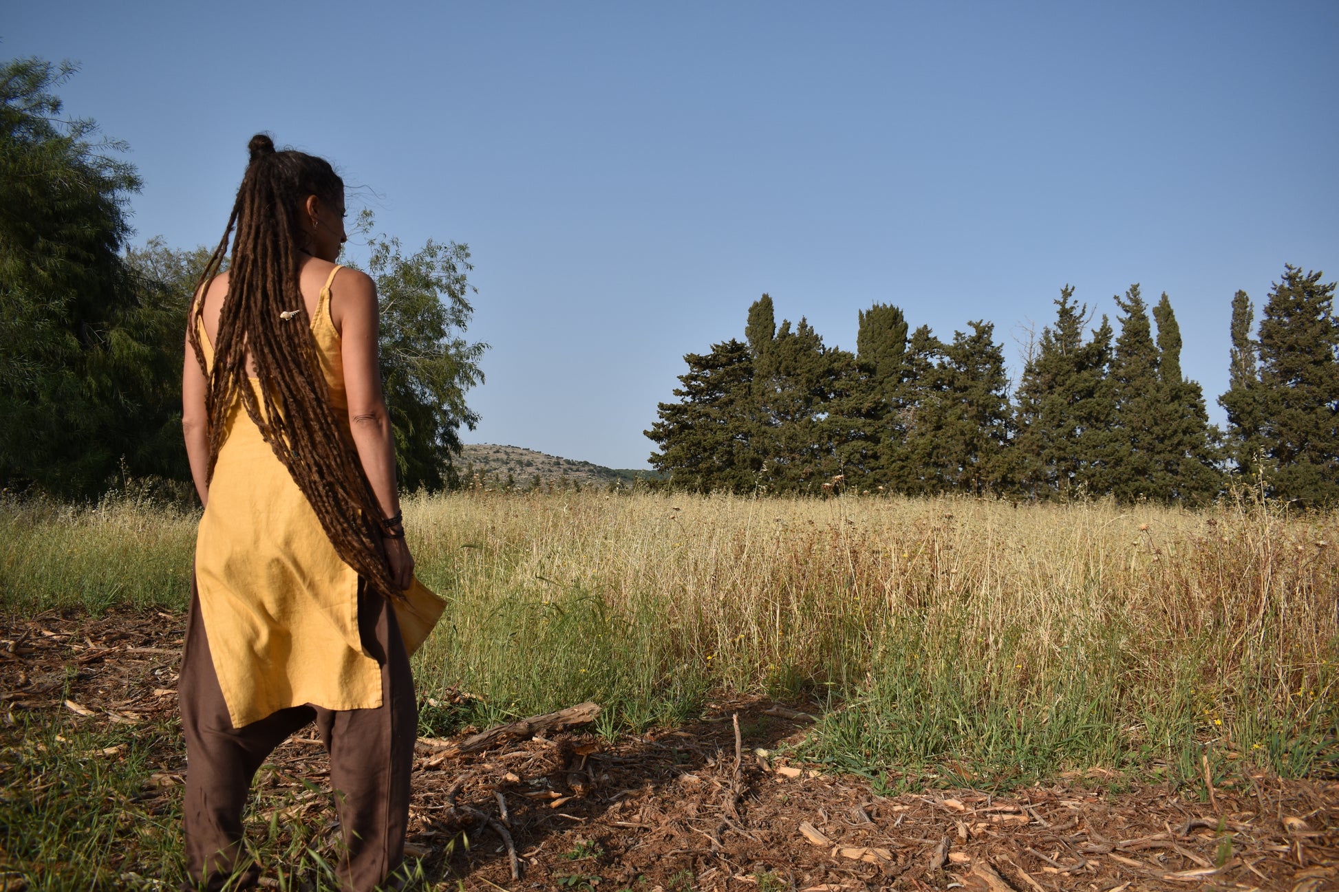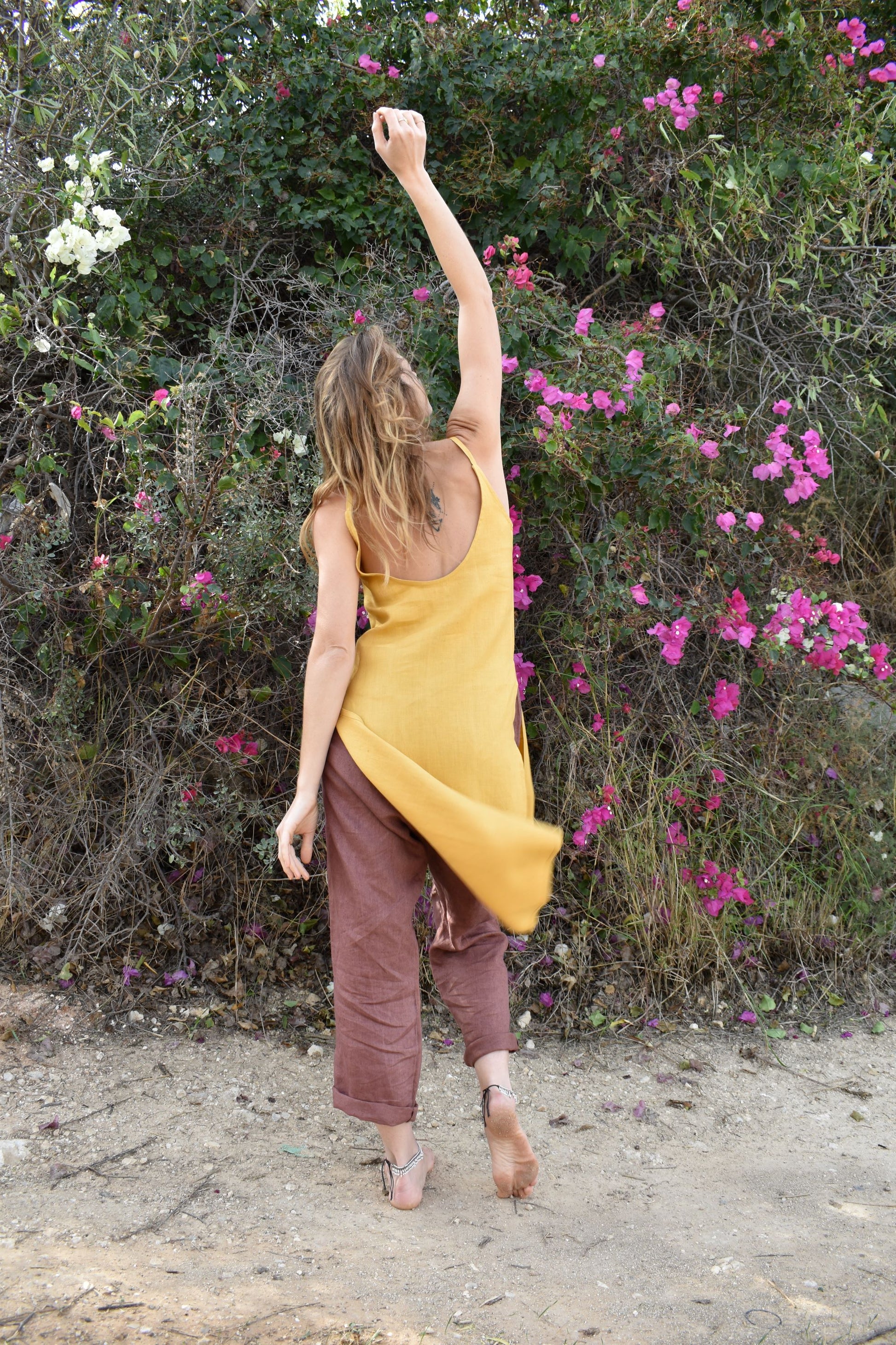 עשוי 100% בד קנבוס, בד נושם המשתפר עם השנים טוניקה פשוטה אך אלגנטית בצבע טבעי, מושלמת לקיץ.